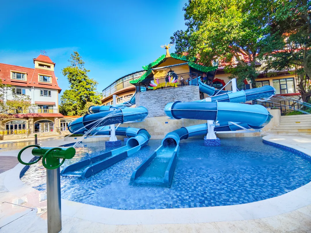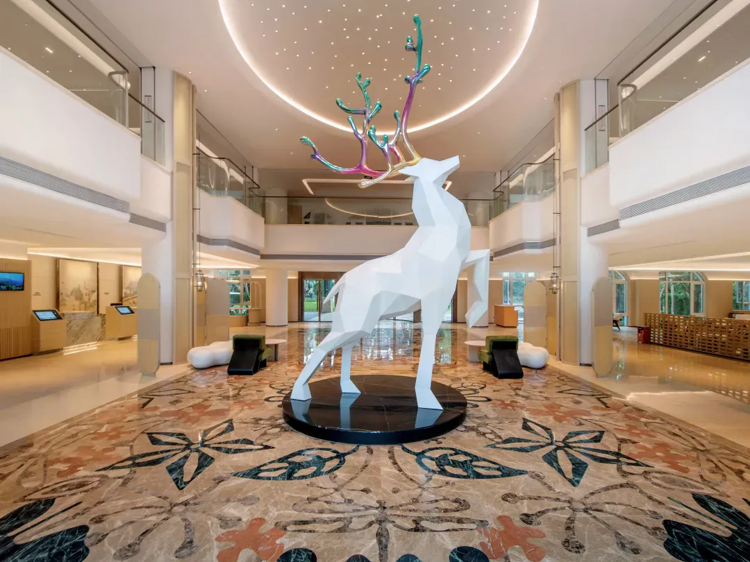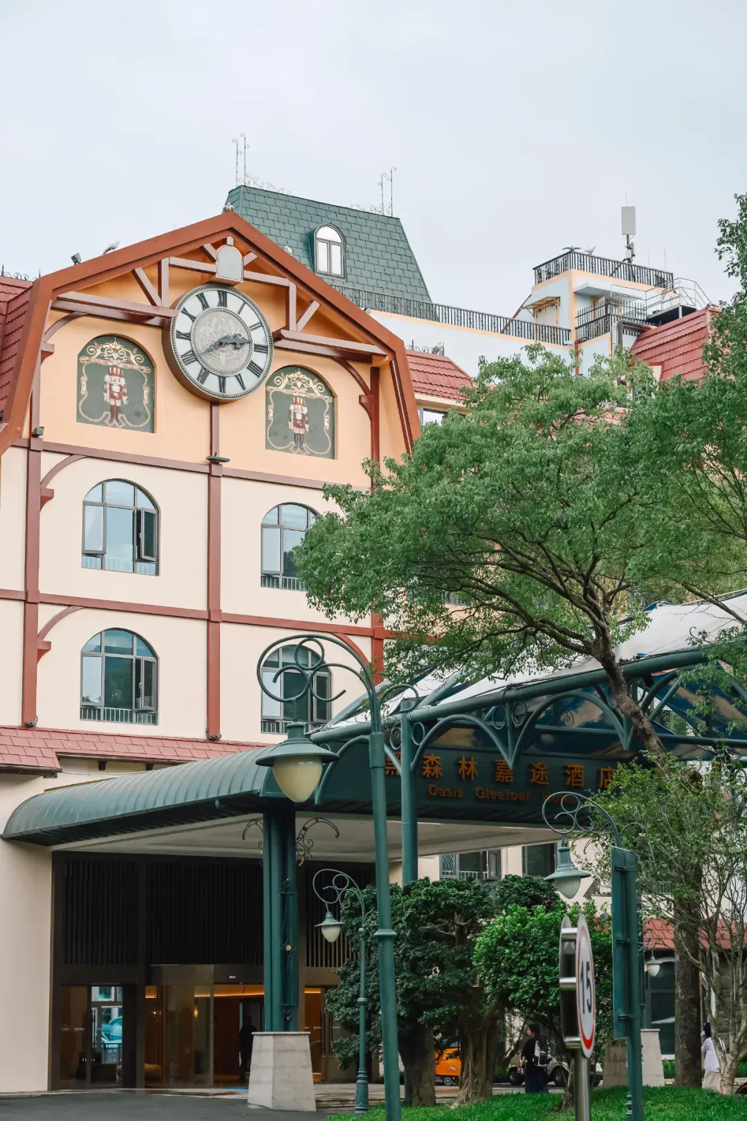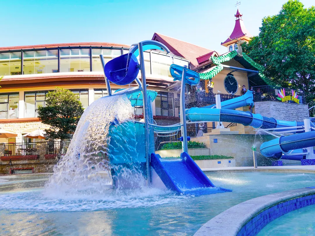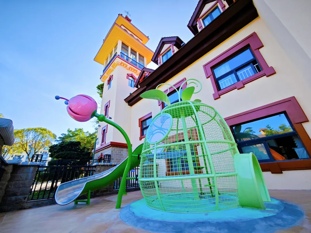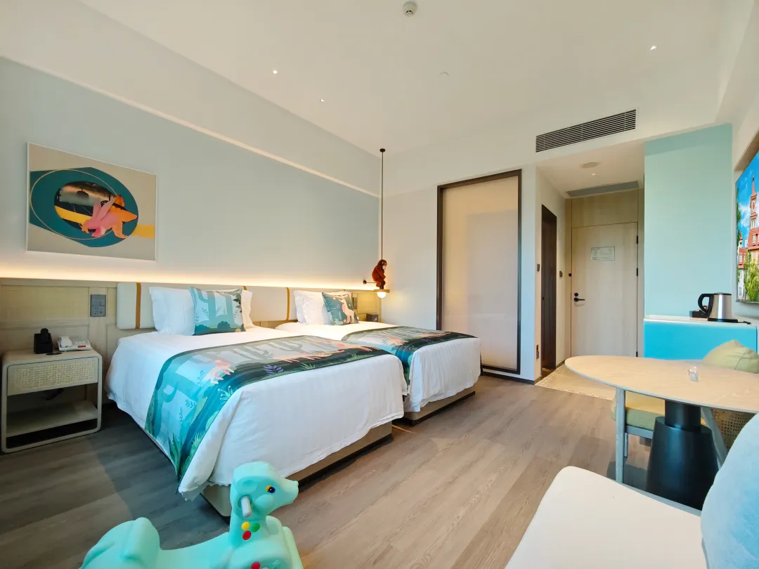 酒店拥有300间(套)客房,被森林绿意环绕又充满童话感的五彩城堡营造出温馨的童趣空间,在保持原有欧式童话建筑风格的同时,融入了丰富的亲子元素。