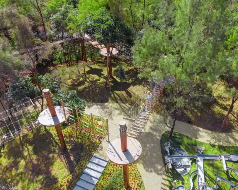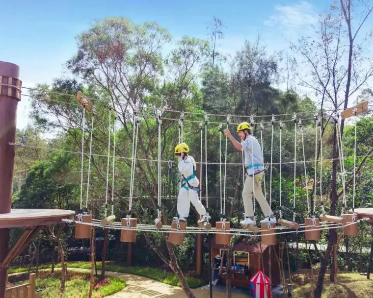 从吊桥、攀爬网、平衡木、无动力设施到戏水设备,