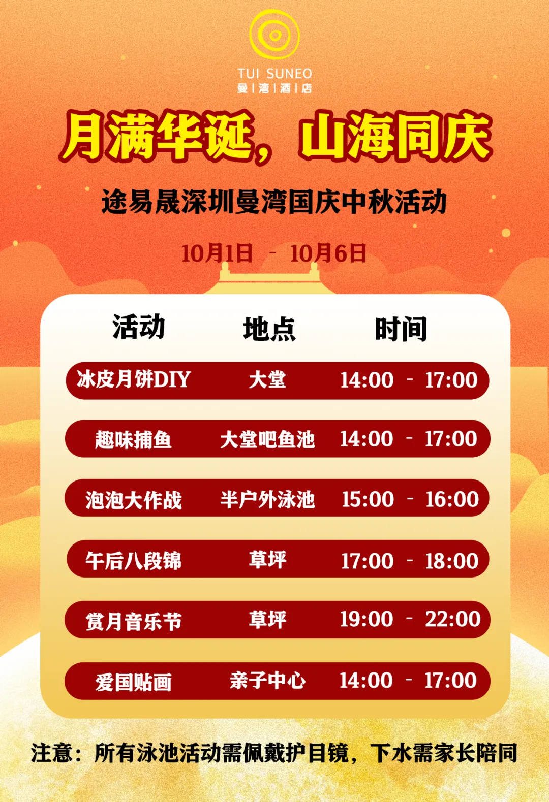 【享】免费参与双节主题活动:冰皮月饼DIY、午后八段锦、趣味捕鱼、泡泡光影活动、赏月音乐节、爱国贴画