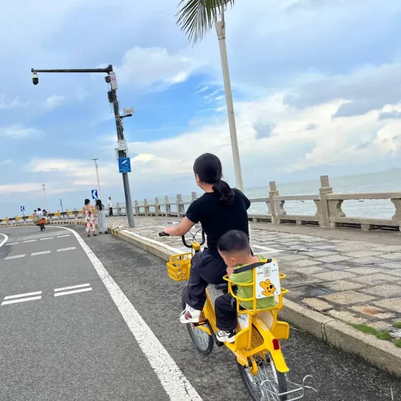 亲子双人骑行自行车免费骑行2小时,沿着海边骑行