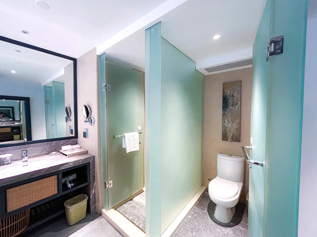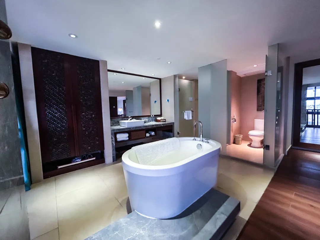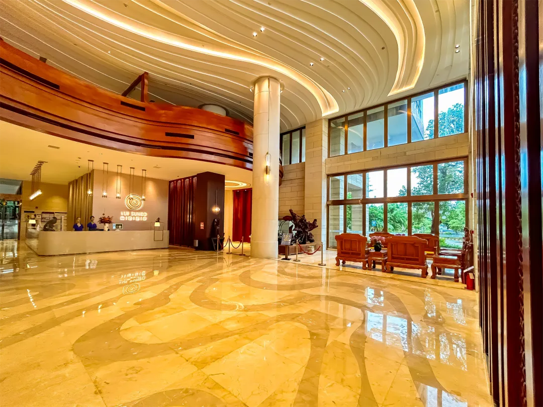 酒店占地面积近5万平方米,其中建筑面积约4万平方米,坐拥1.5万平方米生态园林。这里巧妙融合广府文化底蕴与海洋风情特色,中式红墙与山海景致相映成趣,龙岐湾的碧波荡漾与七娘山的秘境风光皆可尽收眼底。