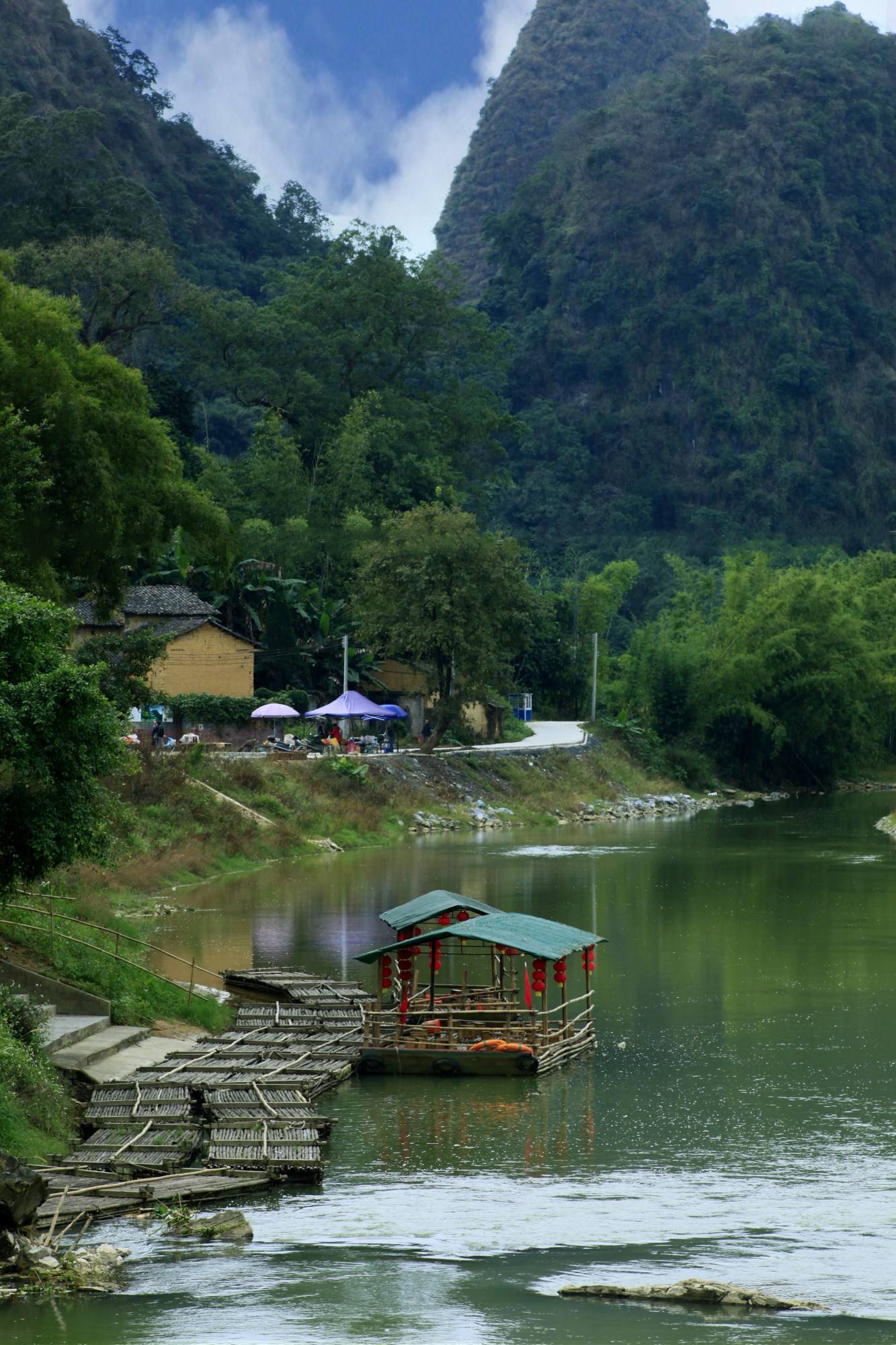 ● 位于彭家祠景区内的漂游,是英西峰林景区内最浪漫的景点之一。当竹筏穿行在清澈碧绿的黄花溪上,两岸如画的峰林,以及郁郁葱葱草木、田野,让人目不暇接,就如人在画中游一般