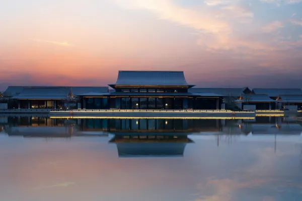 重庆山前宋品酒店坐落于重庆文旅城湖心岛之上,设计灵感源于重庆记忆,尊崇中式建筑的秩序与对称美学,融入巴渝风情的民族乐器、蜀绣等元素,打造出低调而又具有在地文化体验的空间感,宾客可轻松坐享购物、娱乐一站式体验。